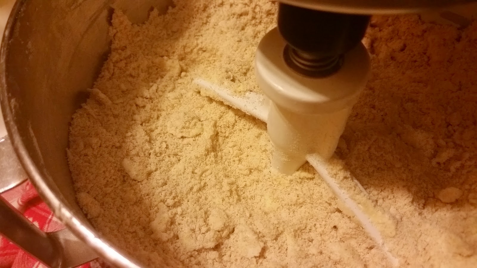 I dumped the whole thing into my stand mixer with the paddle and watched it carefully to make sure I didn't over-mix it. The dough will look like this when it has come together - stop mixing as soon as it all comes into a big clump.